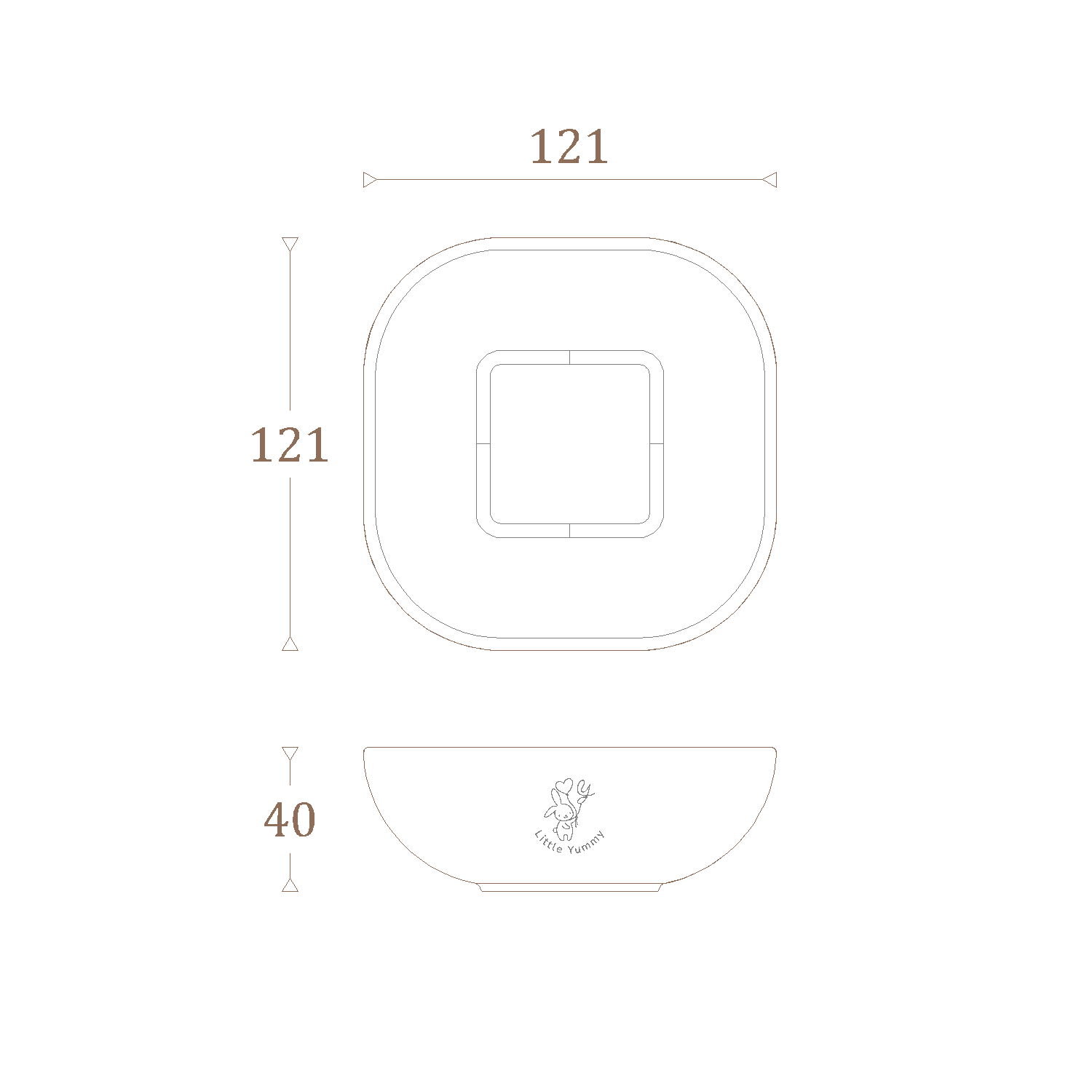 Miseczka pochodzi z tej samej serii co silikonowy kwadratowy talerz, dzięki czemu można stworzyć spójny, estetyczny zestaw dziecięcych naczyń. W serii dostępne są również kubek i łyżeczka, co pozwala skompletować pełen zestaw do karmienia lub samodzielnie dobrać elementy według własnych potrzeb.